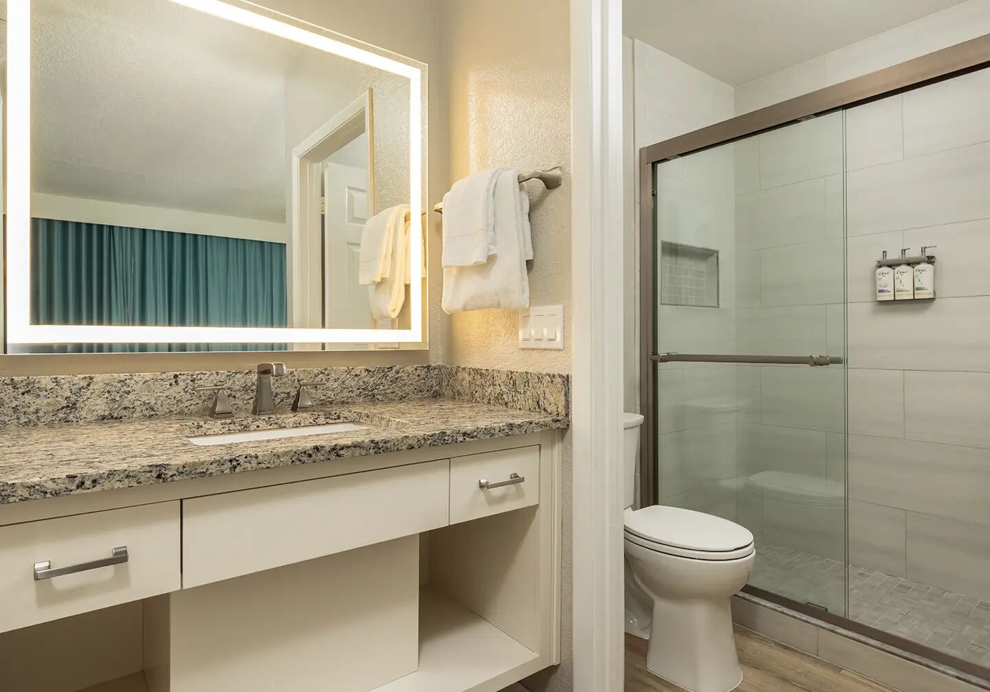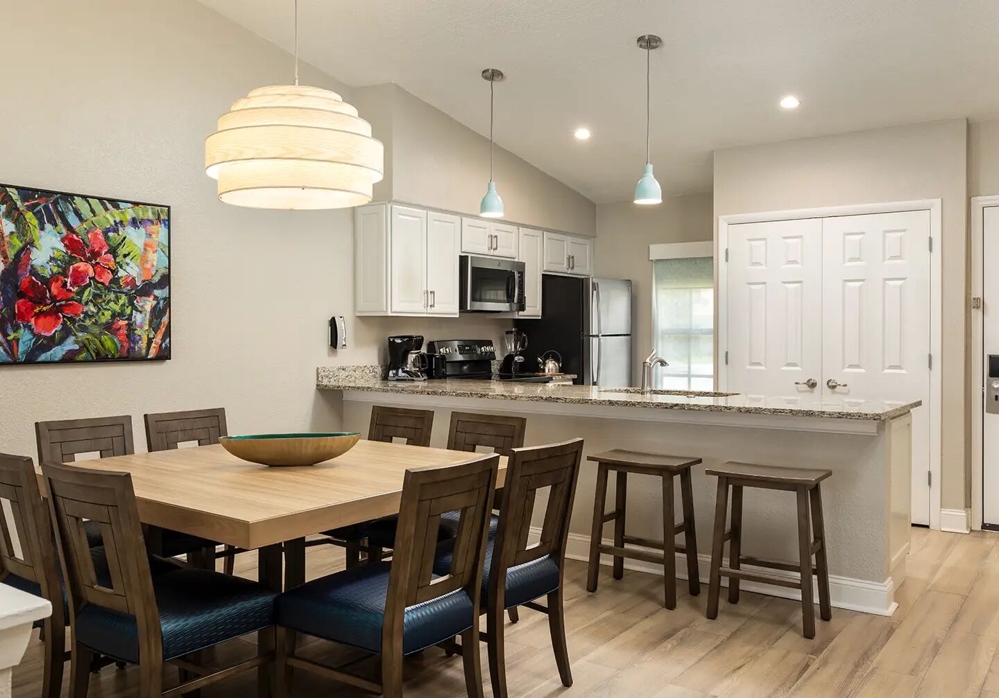 A variety of different units are available at the Holiday Inn Orange Lake North Village. Ranging from one to three bedrooms, they offer ample room for groups of four to twelve guests to relax after action-packed days. All are attractively furnished in rich, bold colors and offer amenities, comforts, and conveniences such as full kitchens, air conditioning, in-suite washer/dryer, telephones and more.
