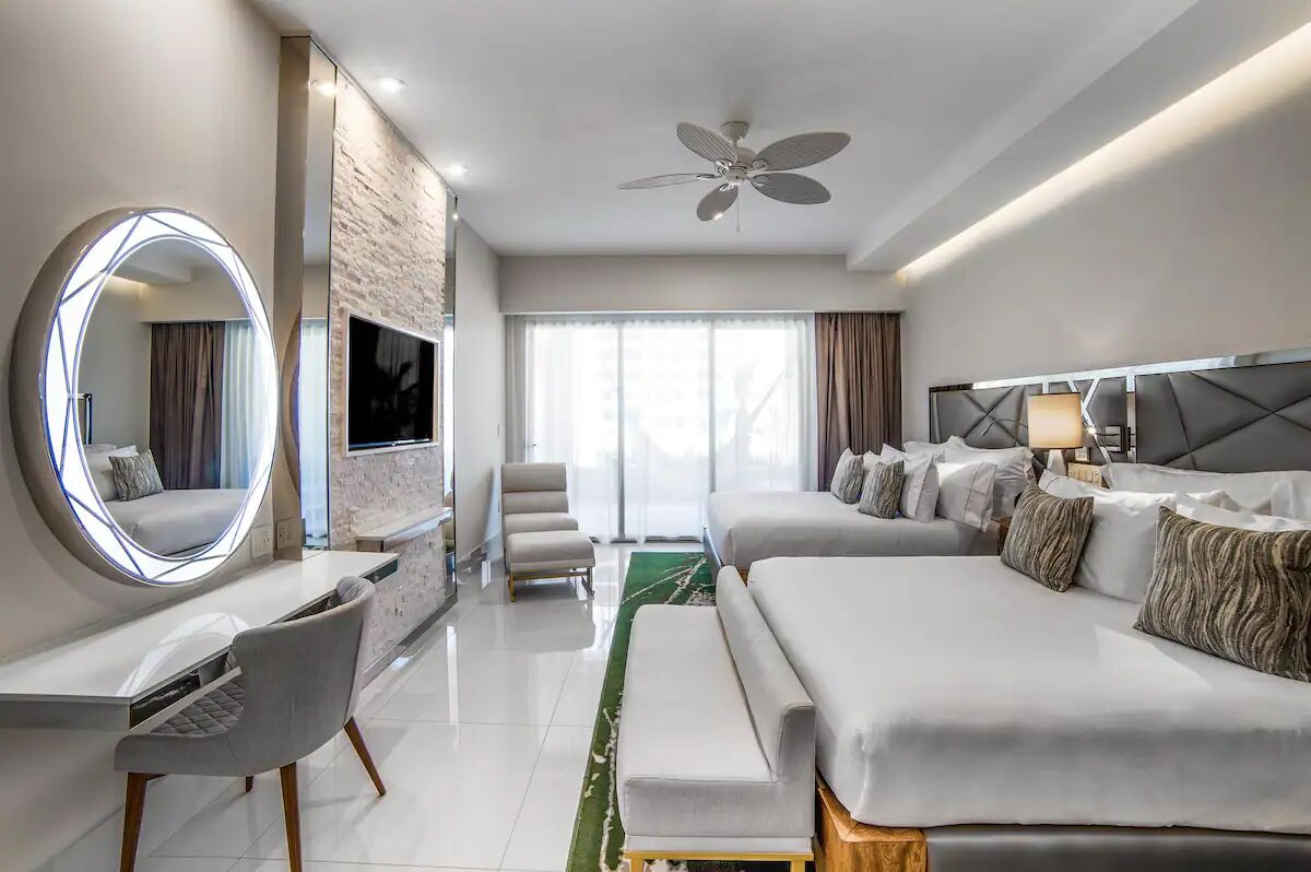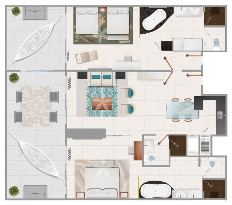 Garza Blanca Resort & Spa Los Cabos offers a variety of studio, one-bedroom, two- bedroom and three-bedroom suites and residences capable of sleeping up to three, four, six or eight guests, respectively. Studio units have one king bed or two queen beds, and one bathroom. One-bedroom units come with one king and one sofa bed, as well as two bathrooms. Two-bedrooms offer more space, with one king bed, two queen beds, one sofa bed and three bathrooms. Three-bedroom residences are the roomiest, with enough space to accommodate up to eight guests. In addition, most units offer stunning ocean views and furnished balconies from which to enjoy the ocean air and splendor.