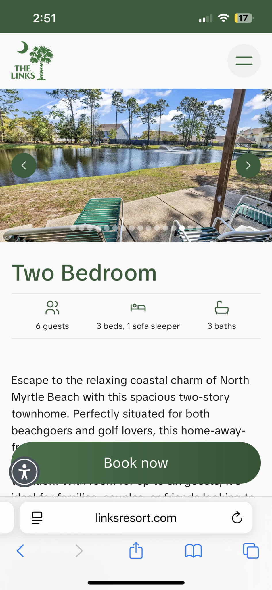 • A nice getaway to relax in Myrtle Beach! There is an indoor and outdoor pool, a pond with wildlife to view, and a game room onsite. Very...