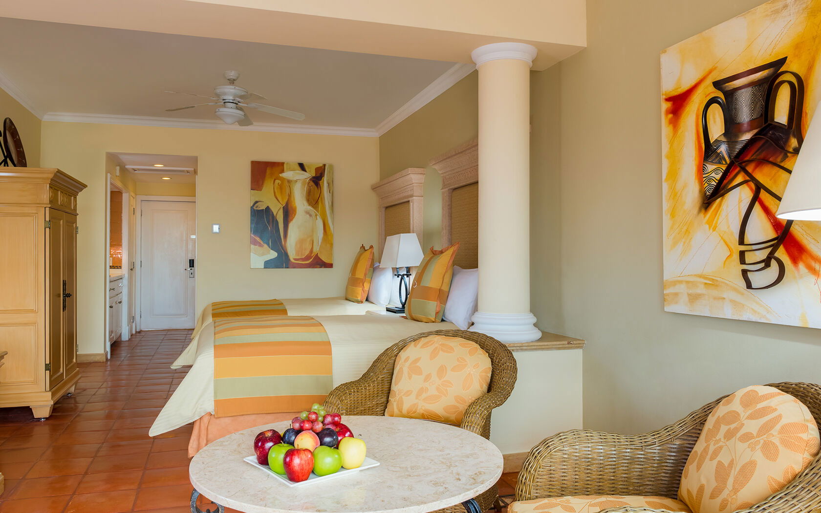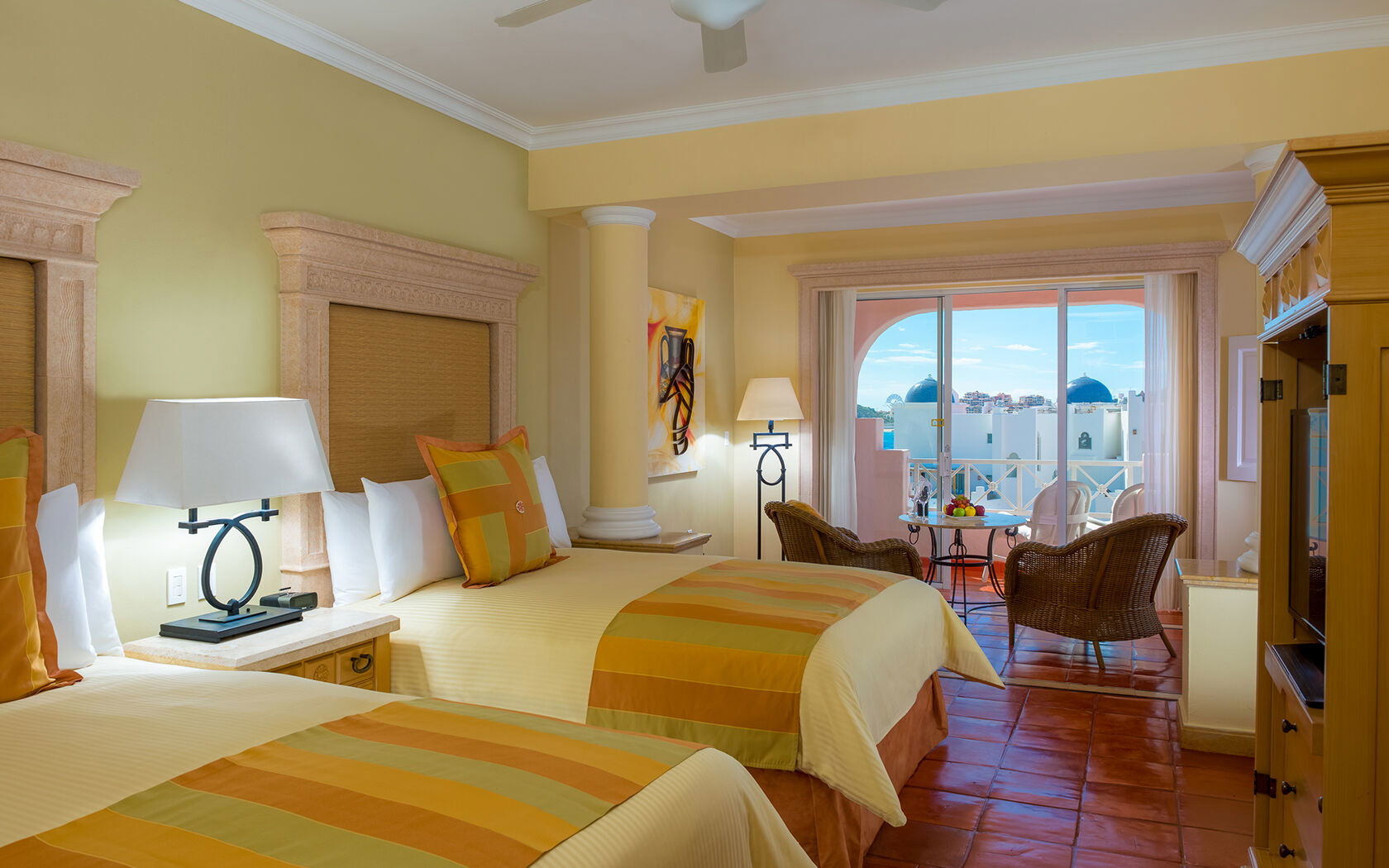 The spacious and beautifully appointed rooms at Pueblo Bonito Rose combine comfort with style, featuring contemporary décor and sweeping views of the Sea of Cortez or the resort’s lush gardens. Each unit is equipped with a private balcony, luxurious bedding, and modern conveniences such as flat-screen TVs, minibars, and Wi-Fi. The resort offers a range of accommodations, including studio suites, one- and two-bedroom suites, and penthouses - perfect for couples, families, or small groups seeking both intimacy and convenience during their stay.
