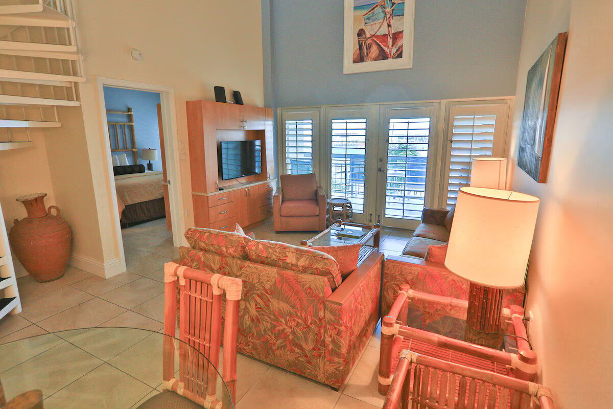 The Galleon Resort offers a multitude of accommodations in studio, one-bedroom and two-bedroom configurations. Studios house two people and are equipped with a small refrigerator, coffee maker and microwave oven. One-bedroom suites sleep up to four while most two-bedroom suites sleep up to six, while both include a full kitchen, dining area and decked out living area. Each is lovingly furnished with sandy earth tones, rattan furniture and tropical prints that perfectly set the mood for your stay in Key West.