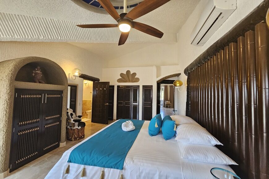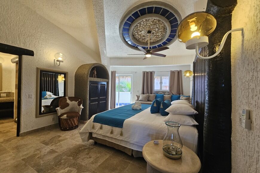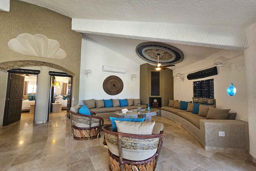 You are about to enjoy the best of Mexican hospitality in Cabo San Lucas, Baja Sur. Guests enjoy a bar and restaurant, beach palapas, a ponga bar, jet-skis, windsurfing and a swimming pool and whirlpool spa. Numerous shops are available in town. You will also enjoy whale watching, sunset cruises, cocktail and welcome parties. Fishing, snorkeling, sailing and other special activities may be arranged through your Villa Hospitality Host. Restaurants in town range from casual to elegant.