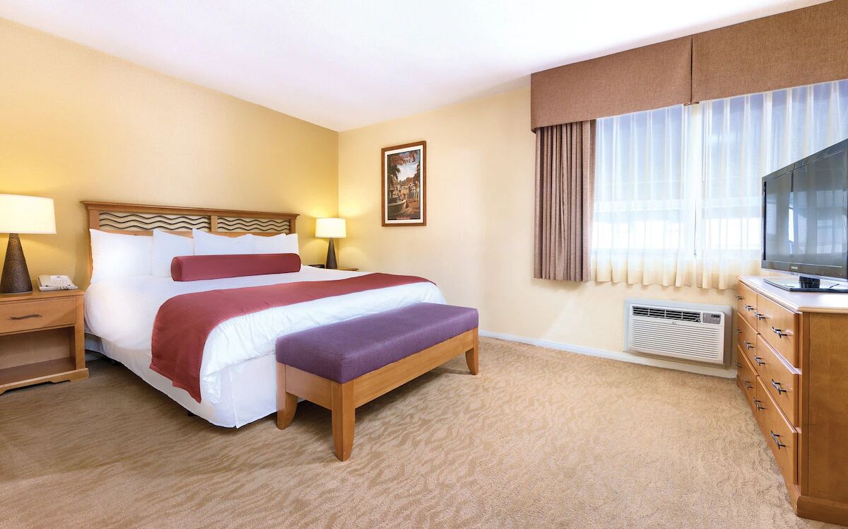Club Wyndham Dolphin's Cove is located less than one mile from Disneyland, surrounded by impeccably-manicured grounds. Plenty of onsite amenities will keep your group busy all vacation long - enjoy an outdoor pool and hot tub, dedicated children's pool, the “Get Out & Play” activity program, a fully-equipped fitness center, game room, picnic and barbecue area, putting green and movie rentals!