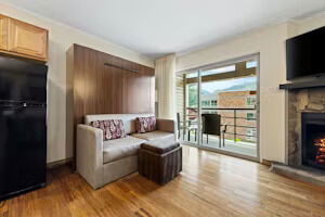 At The Christie Lodge, you'll enjoy coming back to your one or three-bedroom villa at the end of the day. Each suite features a kitchenette, dining table, fireplace, queen-sized bed, queen-sized sleeper sofa, child size daybed, television, telephone, balcony or patio and complimentary Wi-Fi access. One-bedrooms are well-suited for four guests, while three-bedrooms can accommodate up to eight.