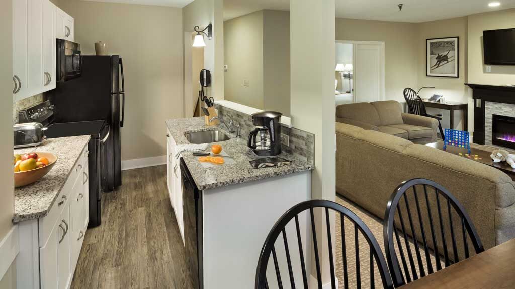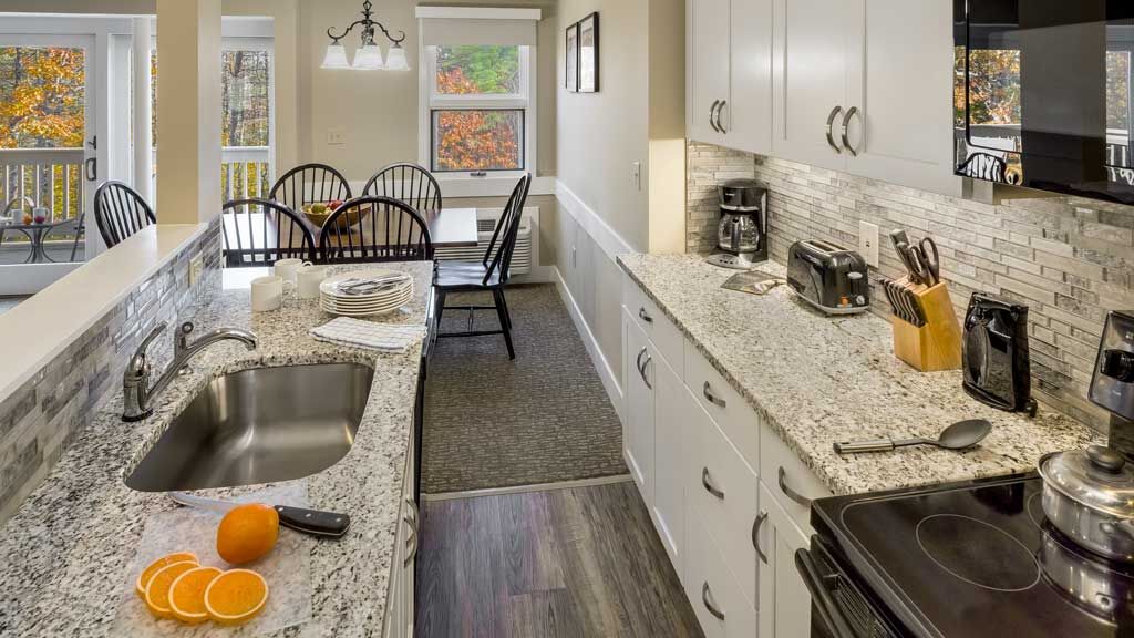 Steele Hill Resort's accommodations include one-bedroom units, two-bedroom units and two- bedroom townhouses. All units include a full kitchen, living area, dining area and patios or balconies overlooking the property and surrounding scenery. In addition, most units include a whirlpool bathtub and many include a fireplace.