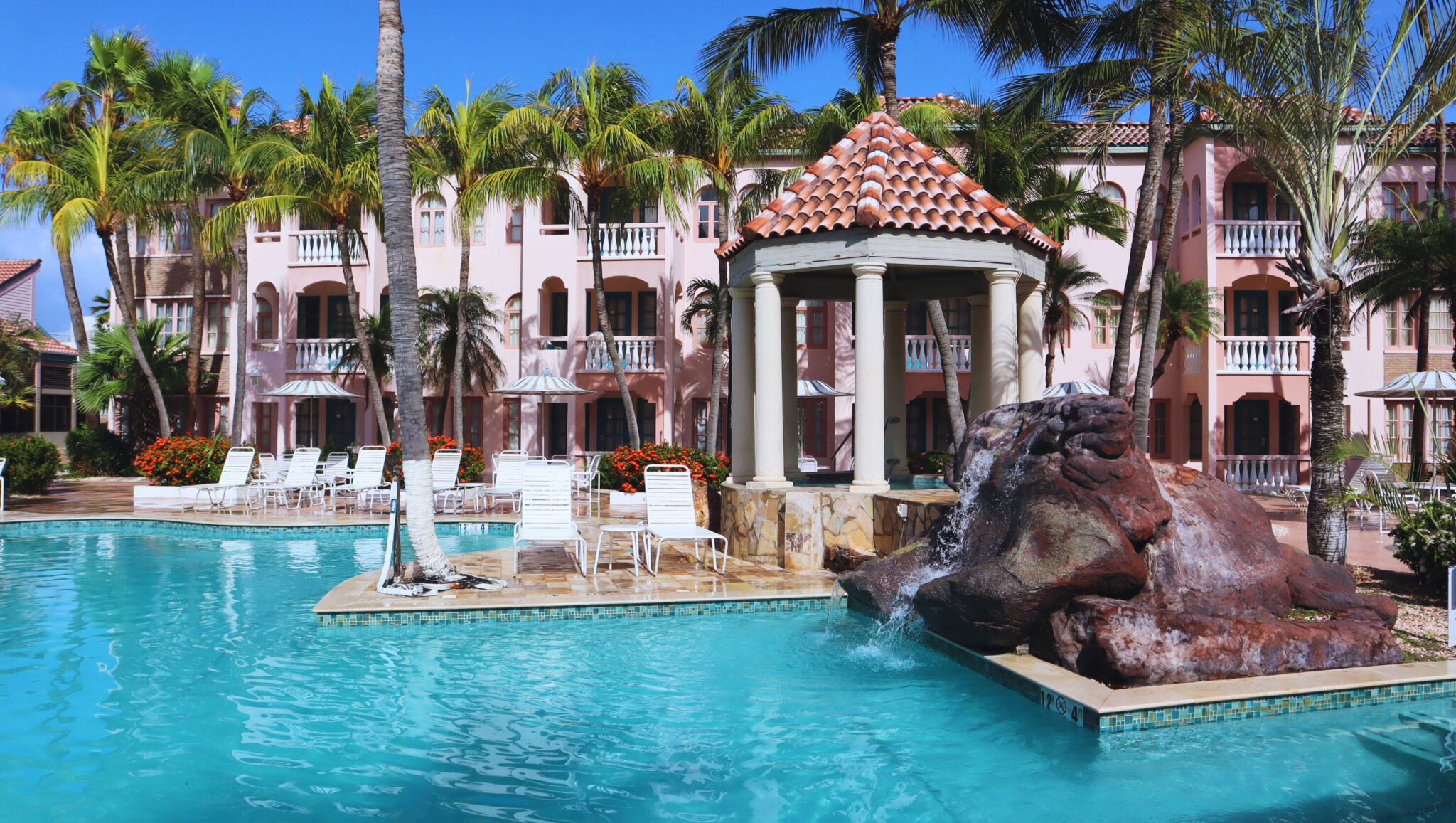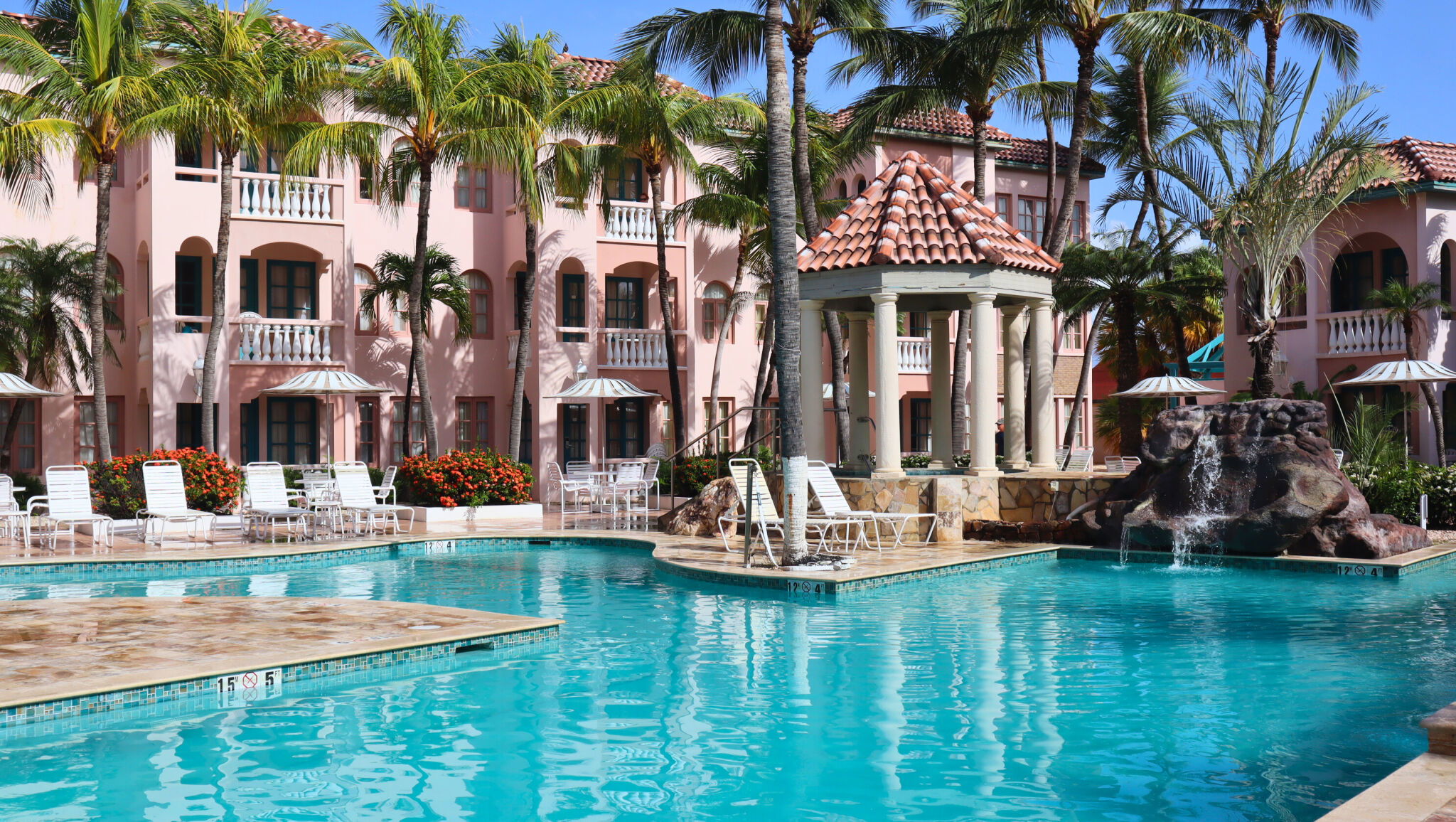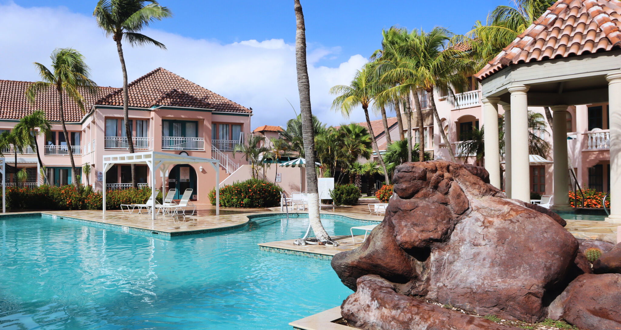 Caribbean Palm Village enjoys a peaceful and private setting, in the midst of a lush tropical garden. The resort offers two- and three-story condominiums surrounding two pool areas, each with a whirlpool. Among other on-site amenities are a restaurant and pool bar, tennis, and barbecue areas. Many nightclubs and casinos are less than a mile away.