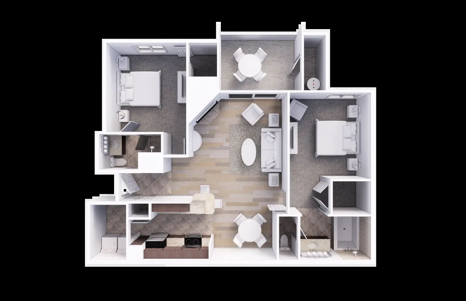 The Desert Club Resort's 19.5 acres house over 600 one and two-bedroom suites. Each suite offers a full kitchen, air conditioning, cable TV telephone, wireless internet, fireplace, washer/dryer and private balcony or terrace. Keeping in step with the resort's theming, rooms are decorated with warm, sun-drenched earth tones and exquisite furniture. Touches of glossy, dark woods and marble accent the experience.
