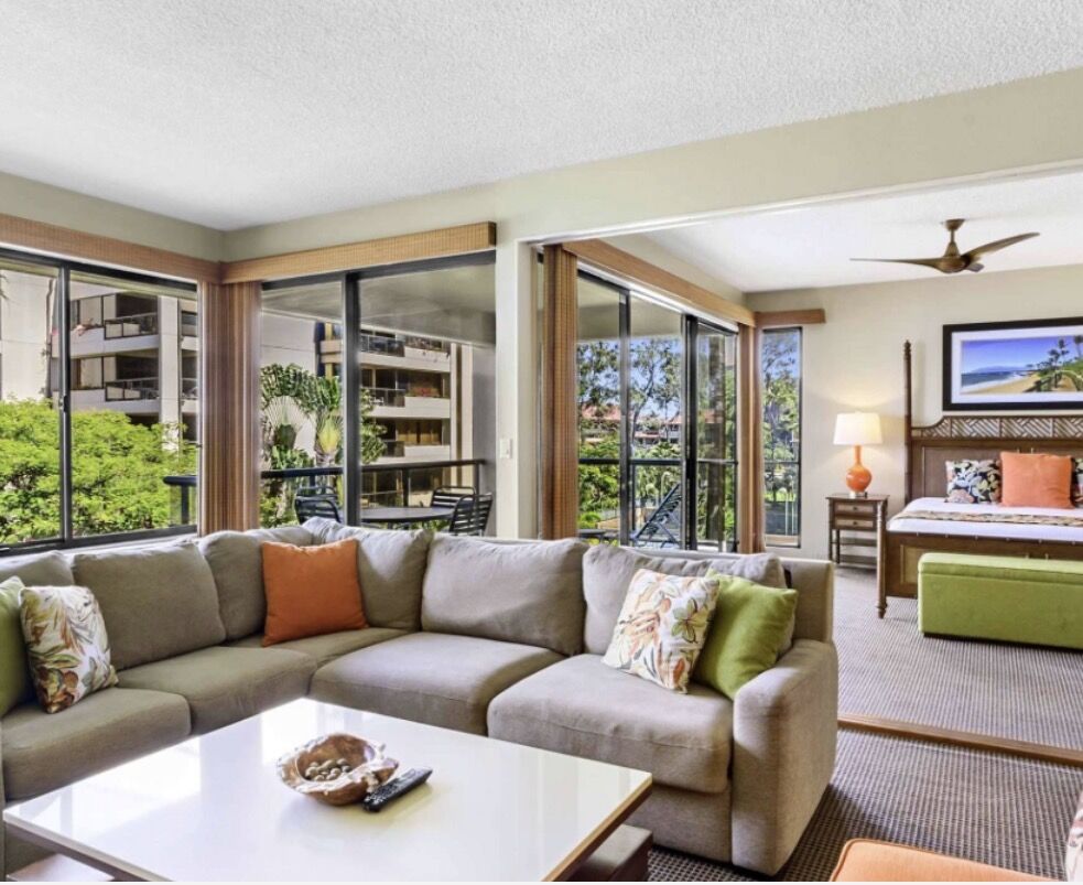 The Sands of Kahana offer units ranging in size from one to three-bedrooms with a variety of vistas to choose from. The larger units provide all the comforts of home, with plenty of room to spread out. Enjoy a home-cooked meal in the large, fully-equipped kitchen, go home with clean clothes thanks to the in-unit washer and dryer, and enjoy the sunset each night from your private lanai. Soothing West Maui breezes keep units cool and comfortable, with ceiling fans and extra fans in the closet if desired.