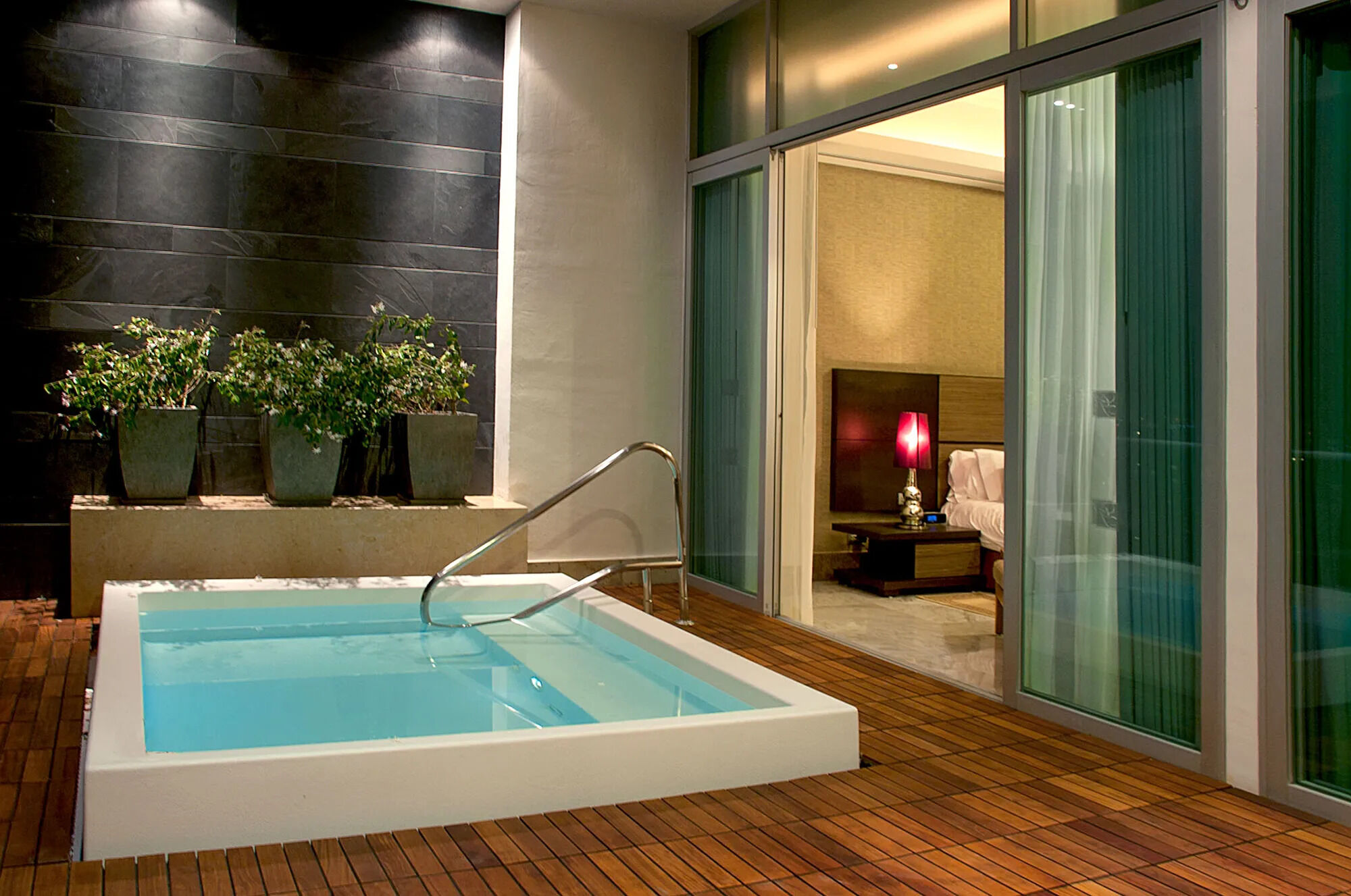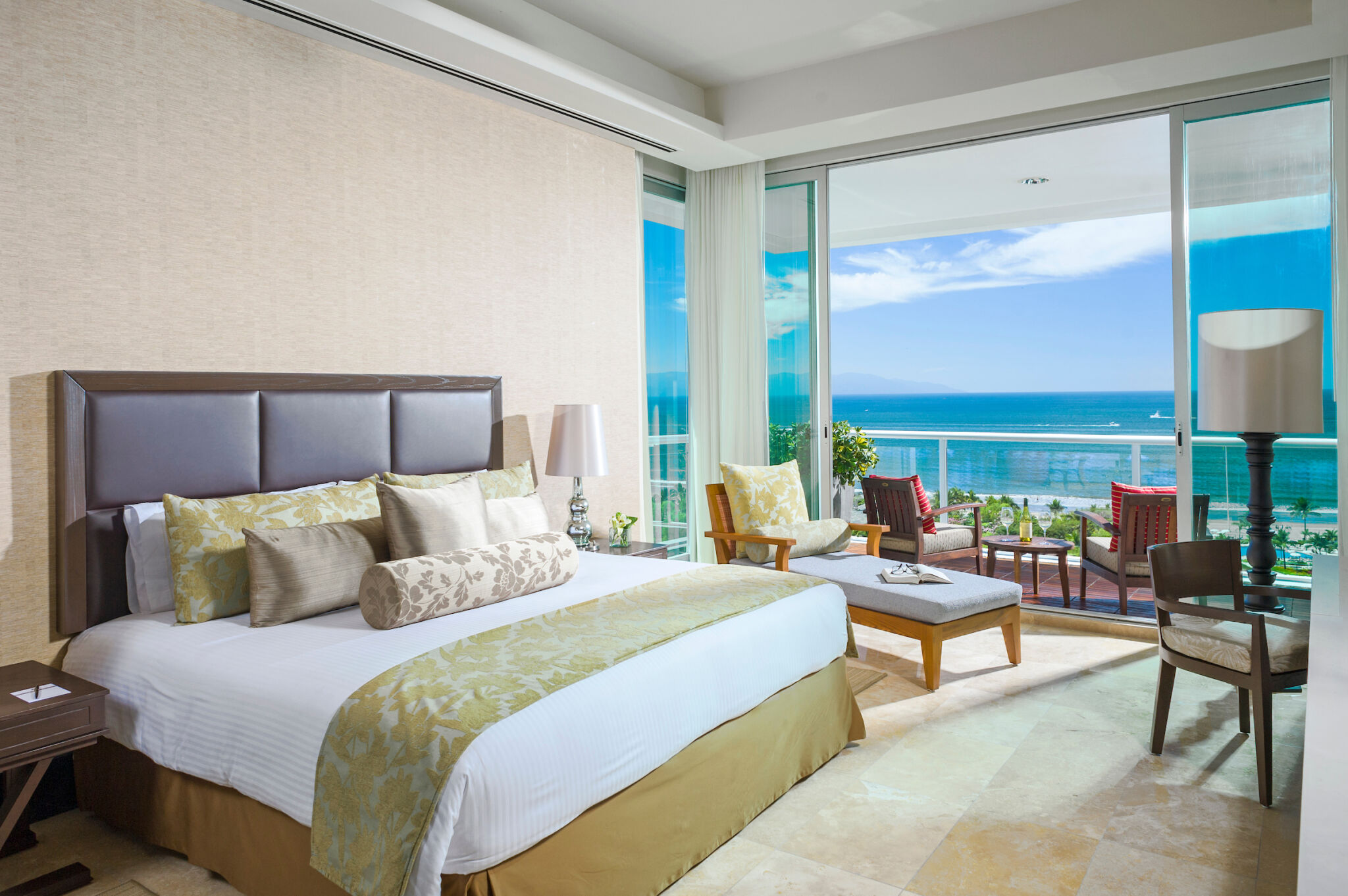 Oceanside units overlook the Bay of Banderas, while the riverside accommodations provide views of the jungle and twinkling lights of Puerto Vallarta. Step onto the balcony and view amazing sunsets from your heated sitting pool, hammock, or lounge chair. With a world-class spa, championship golf course and gourmet restaurants, the Grand Luxxe is sure to delight all your senses.