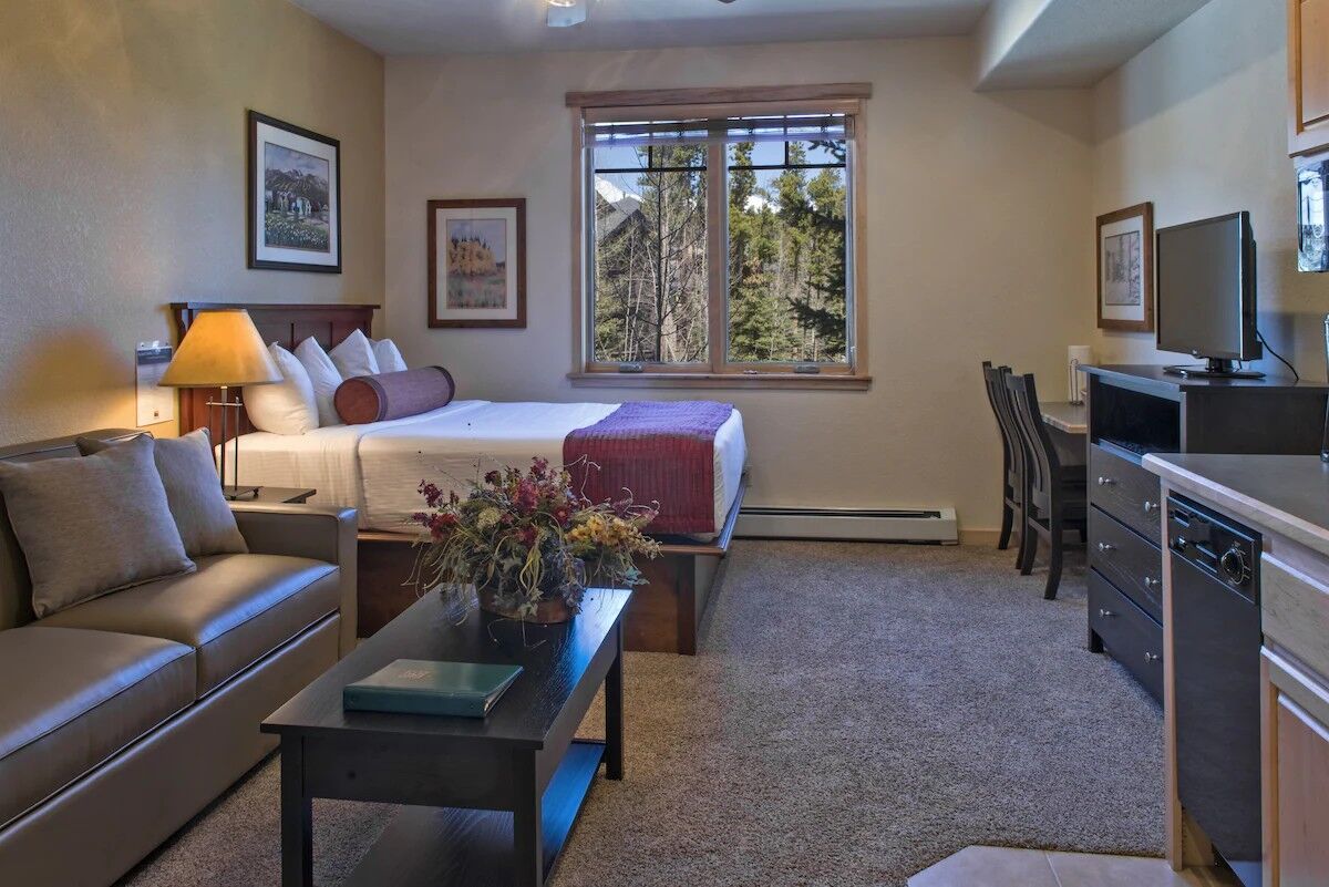 Nestled next to the Snowflake Chairlift and just a short stroll from downtown Breckenridge, Grand Timber Lodge is without a doubt one of Colorado's finest ski-in, ski-out resort! Here, you'll find plenty of options to stay busy, including an indoor/outdoor swimming pool, six hot tubs, full athletic club with classes, The Boot Bar & Grill, equipment rental, general store, children's play room and activity center and premiere ski-in/ski-out access!