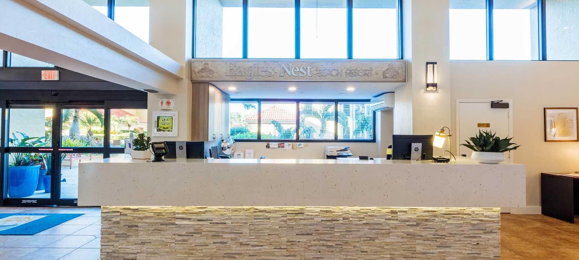 Eagle's Nest Beach Resort indulges guests in a Marco Island experience that blends exhilarating outdoor adventure with the fine art of relaxation. With its clay-tiled roofs, lush tropical grounds and stunning gulf views, this welcoming beachfront retreat provides the distinctive ambience of a Mediterranean village. The centerpiece of Eagle’s Nest’s its beautiful pool area, where palm trees and lush tropical plantings accent the courtyard’s ambiance. Flanked by two whirlpool spas, the heated swimming pool’s unique 1700 square foot design features two shallow ends and plenty of private spots for guests. Two lighted tennis courts, racquetball room, fitness center, pool bar, video arcade, pool, ping-pong and supervised recreation programs provide guests with a variety of options for vacation entertainment.