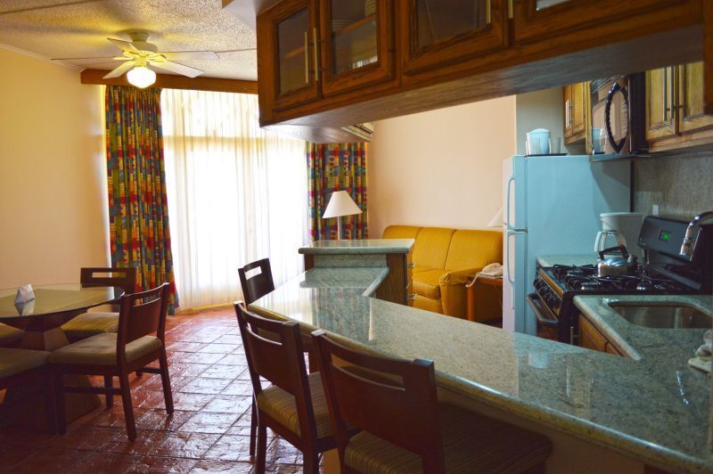 Suites at Paradise Beach Villas are spacious and thoughtfully appointed, offering all the comforts of home with a touch of Caribbean flair. Each unit includes a fully equipped kitchen, separate living and dining areas, central air-conditioning, ceiling fans, cable TV, and a private balcony or terrace—many with sweeping ocean or pool views. Whirlpool tubs and comfortable furnishings make it easy to unwind after a day in the sun, whether you’re traveling as a couple, with family, or with friends.
