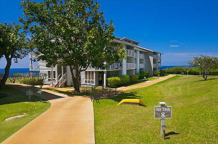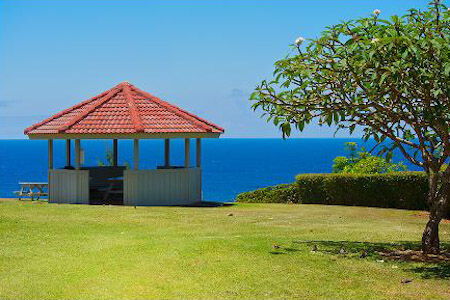 Located on the north shore of Kauai, The Cliffs at Princeville lies within the Princeville Resort on over twenty acres of lush tropical land. This dream of a resort overlooks the Pacific Ocean from atop a high bluff, ensuring dramatic view property-wide. There's certainly no shortage of amenities to be found at The Cliff either; enjoy a tennis court, a pickle ball court, half-court basketball court, two shuffleboard courts, a children's playground, a swimming pool, hot tub spa for adults and a putting green.
