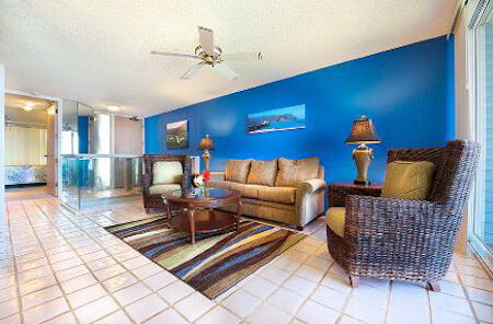 The Cliffs offer the quiet privacy and comforts of spacious suites in both one-bedroom and and one-bedroom loft configurations. Each suite is tastefully adorned with upscale, Polynesian furniture and authentic Hawaiian decor and feature familiar comforts such as a fully-equipped kitchen with granite countertops, two full bathrooms, two private lanais, separate living area and a private master bedroom.