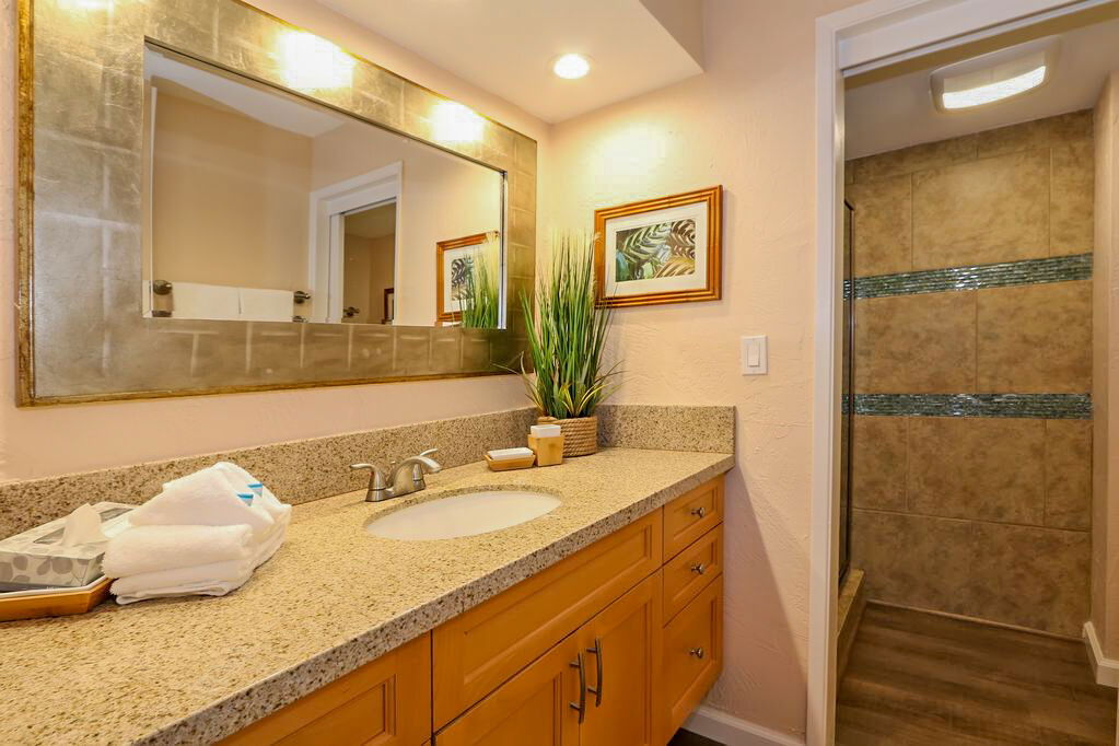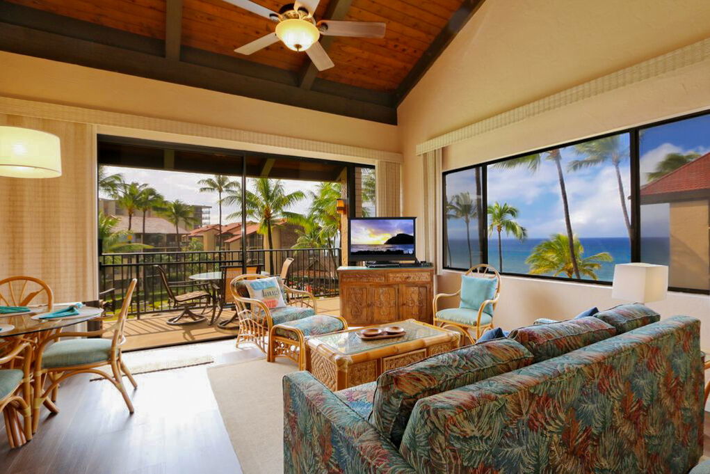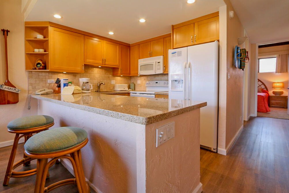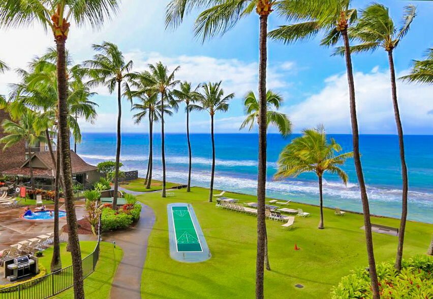 Papakea Resort offers studio, one-bedroom and two-bedroom suites. Studio units feature a queen bed or a Murphy bed. One-bedroom units feature a king or queen bed in the bedroom, and a sleeper sofa in the living area. Two-bedroom units feature either one king and one queen, one king and two twins or two queens, or one queen and two twins, and a sleeper sofa. All units offer air conditioning, a private lanai, and a complete kitchen.