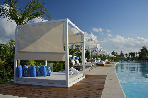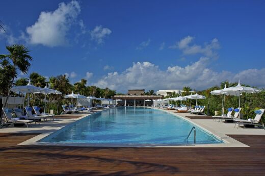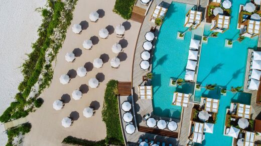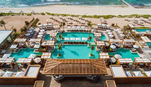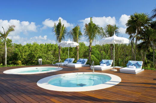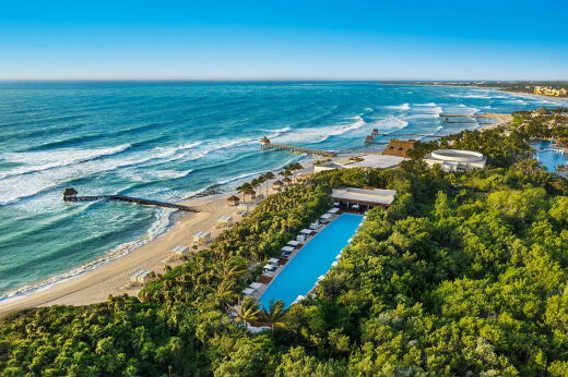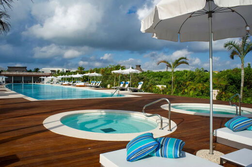 Grand Luxxe at Vidanta Riviera Maya is a luxury, resort-style sanctuary set along the lush jungle and oceanfront of Mexico’s Riviera Maya. Guests enjoy access to a private beach and beach club, multiple tranquil and exclusive pools reserved for Grand Luxxe guests, expansive lounging terraces, and exquisite poolside service with cabanas. On property there are world-class spas (Spatium, Brio), fitness centers, fine dining options, and nightly entertainment including the permanent Cirque du Soleil show JOYÀ. For extra pampering, there’s a hydrotherapy annex, concierge and butler services, plus a recently added pool concierge offering luxury touches like chilled towels, ice water, and shade cabanas.