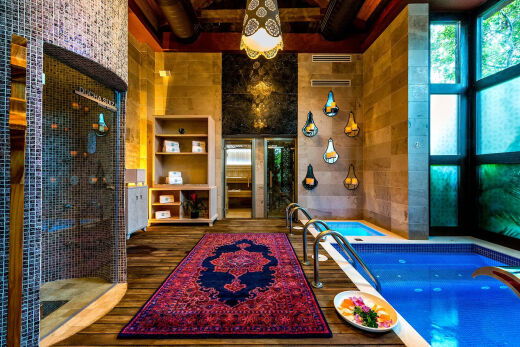 The accommodations at Grand Luxxe are spacious and designed for high comfort, offering villa-style suites across several layouts. Many units include gourmet kitchens, dining and living areas, private terraces with plunge pools, multiple bathrooms with marble finishes and Jacuzzi tubs, and sweeping views of jungle or sea. The décor blends natural materials, neutral tones, and elegant modern finishes to create a serene retreat. Recent additions such as the Jungle Suites add secluded floor plans and elevated design touches for guests seeking a more intimate feel.
