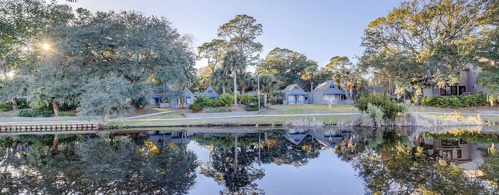 The Village at Palmetto Dunes enjoys a serene Hilton Head Island setting surrounded by the Robert Trent Jones Golf Course, Palmetto Dunes Tennis & Pickleball Center, and scenic lagoons, with the beach just a short stroll away. On-site amenities include a swimming pool, hot tub, picnic areas with barbecue grills, and easy access to bike rentals, making it simple to relax or explore at your own pace.
