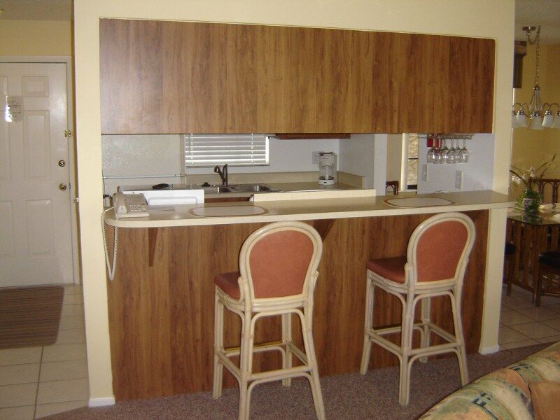 Lago Vista offers two bedroom-two bathroom condos with a king-size bed in the master bedroom, two twin beds in the second bedroom, and a queen sleeper sofa in the living area. All condos are equipped with air conditioning, full kitchen including microwave and dishwasher and in-suite washer/dryer in select units. Room for up to six ensures enough space to spread out in comfort.