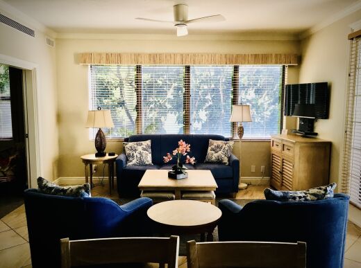 Eagle’s Nest’s seventy tower units and twenty-six villas offer beautifully-appointed one-bedroom and two-bedroom condos, each with two bathrooms, sleeper- sofa, screened-in balcony, fully-equipped kitchen, in-villa washer/dryer and cable/video/DVD player. Earthy, sandy tones accented by rattan furniture and wood trim truly makes your villa feel like your dream island retreat.