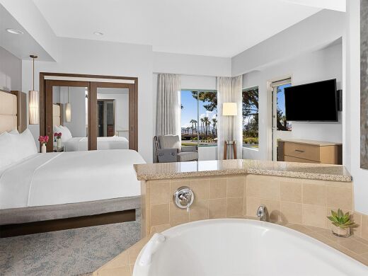Two-bedroom villas exude luxury and are packed with dozens of upscale touches you're sure to appreciate. Villas feature full kitchens decked out with granite counters and stainless steel appliances. Spacious, furnished balconies and terraces allow you to enjoy the California sun whenever you wish. Desert Springs Villas II's bedrooms offer private entrances, while the bathrooms boast over-sized soaking tubs and walk-in showers. In-room washer and dryer are the ultimate convenience when it comes to laundry, and complimentary Wi-Fi will keep you connected all vacation long!
