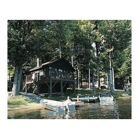 Lake Shore Village Resort is located in central New Hampshire, about 20 miles southwest of the capital city of Concord. The resort looks out on Lake Horace and the surrounding forestland. Rustic, log-sided vacation homes fit right in with the unspoiled surroundings and offer modern comfort and convenience. Summer activities revolve around the lake: A fishing boat is provided for you. Canoes, sailboats, and paddleboats are also available. In winter, this region becomes a skiing center. Within a few miles is Pat's Peak, with a top elevation of 1,400 feet.