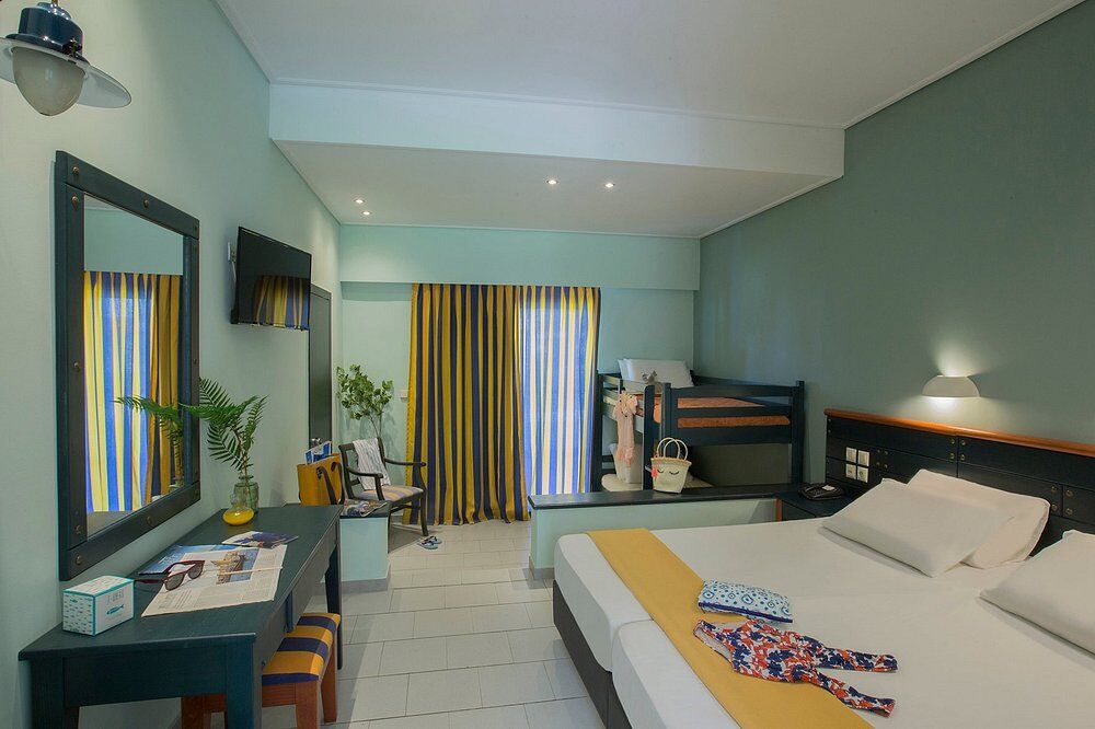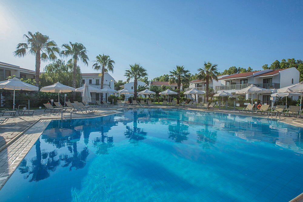 Golden Coast Hotel & Resort is a welcoming, family-friendly retreat located on the Ionian shores of Zakynthos (Zante), nestled between the charming town of Nea Makri and the historic area of Marathon. The resort enjoys a peaceful beachfront location framed by lush gardens and offers a relaxed, laid-back vibe perfect for both families and couples. On-site amenities at Golden Coast include multiple swimming pools, a children’s playground, and a full-service bar and restaurant serving both local and international cuisine. Guests can also access 24/7 reception, concierge services and laundry.