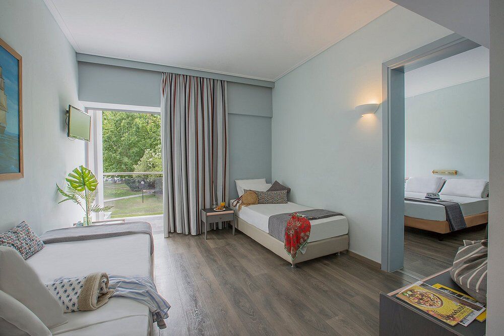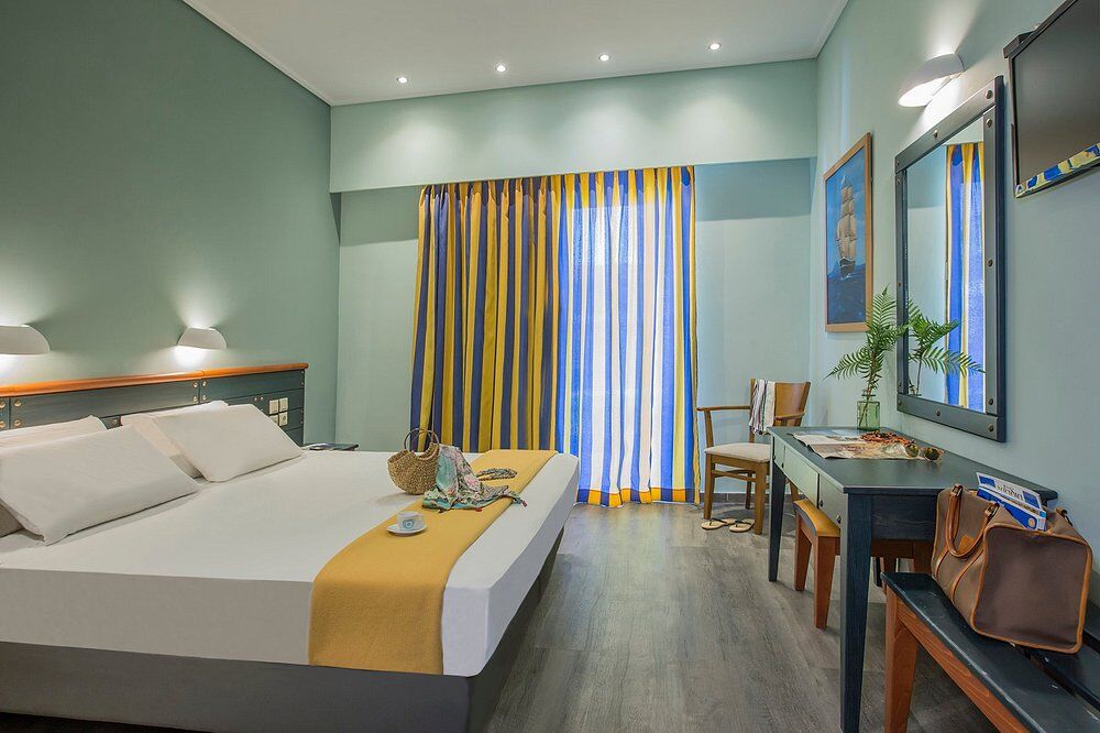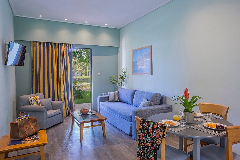Beyond the resort, Zakynthos offers a wealth of unforgettable experiences, from world-famous landmarks to hidden natural gems. Guests can cruise to the iconic Navagio Beach, explore the glowing Blue Caves by boat, or spot endangered loggerhead sea turtles in the protected waters of Laganas Bay. Nearby Zakynthos Town invites leisurely afternoons with its waterfront cafés, museums, and Venetian-influenced architecture, while scenic Bochali Hill rewards visitors with sweeping island views and a historic castle. Adventurers can head to the dramatic Keri Caves and Marathonisi Island for snorkeling and swimming, while food lovers will enjoy local wineries, olive oil estates, and traditional taverna set among olive groves.