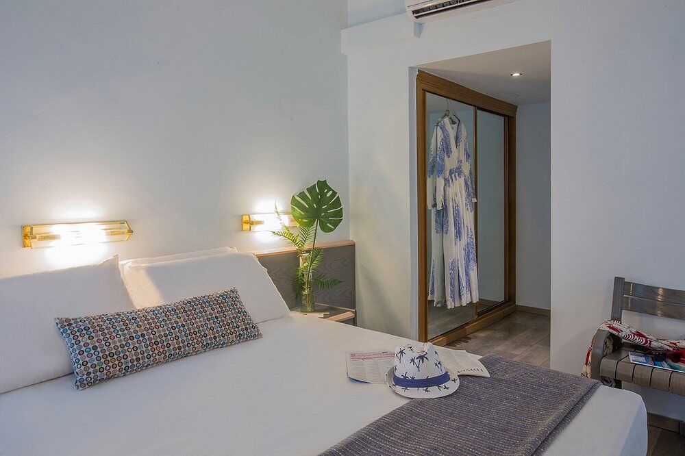 The resort features a wide range of accommodations, from cozy single and double rooms to family bungalows and VIP suites. Each room is equipped with modern comforts like air conditioning, a mini-fridge, safety deposit box, and satellite TV, and most include a private balcony or terrace with views to the garden or sea.