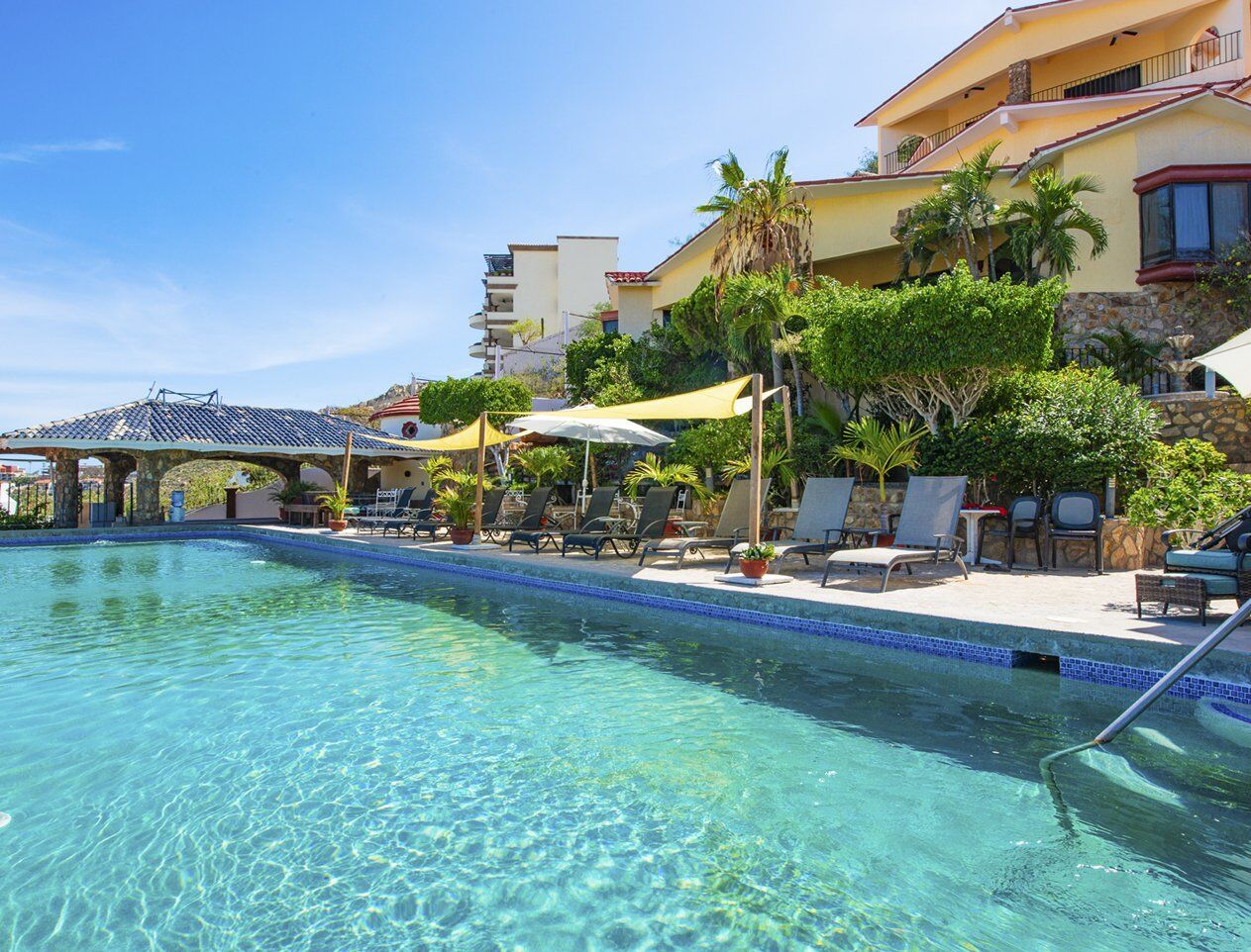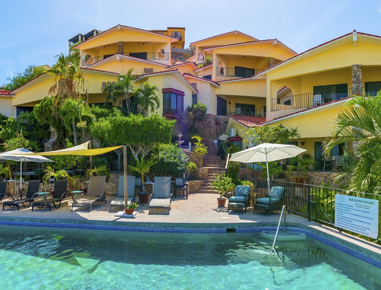 Royal Host Club at Portofino is a villa complex nestled in the hillside overlooking Cabo San Lucas, the marina and Sea of Cortez. Cabo San Lucas is located in the heart of the Bajas boasting spectacular beaches, world class golfing, whale watching, sport fishing and a vibrant night-life. The resort is located in the midst of the action behind the town square. Restaurants, shopping and all activities, except for golf, are located within easy walking distance.