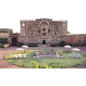 Fort Chanwa of Luni is an exceptional example of Elegance and Symmetry in Indian architecture of the last century. The entire fortress is carved out of the famous red sandstone of Jodhpur and with its ornately carved lattice work friezes and intricate Jherokas it exquisitely captures the romance and grace of a bygone age.