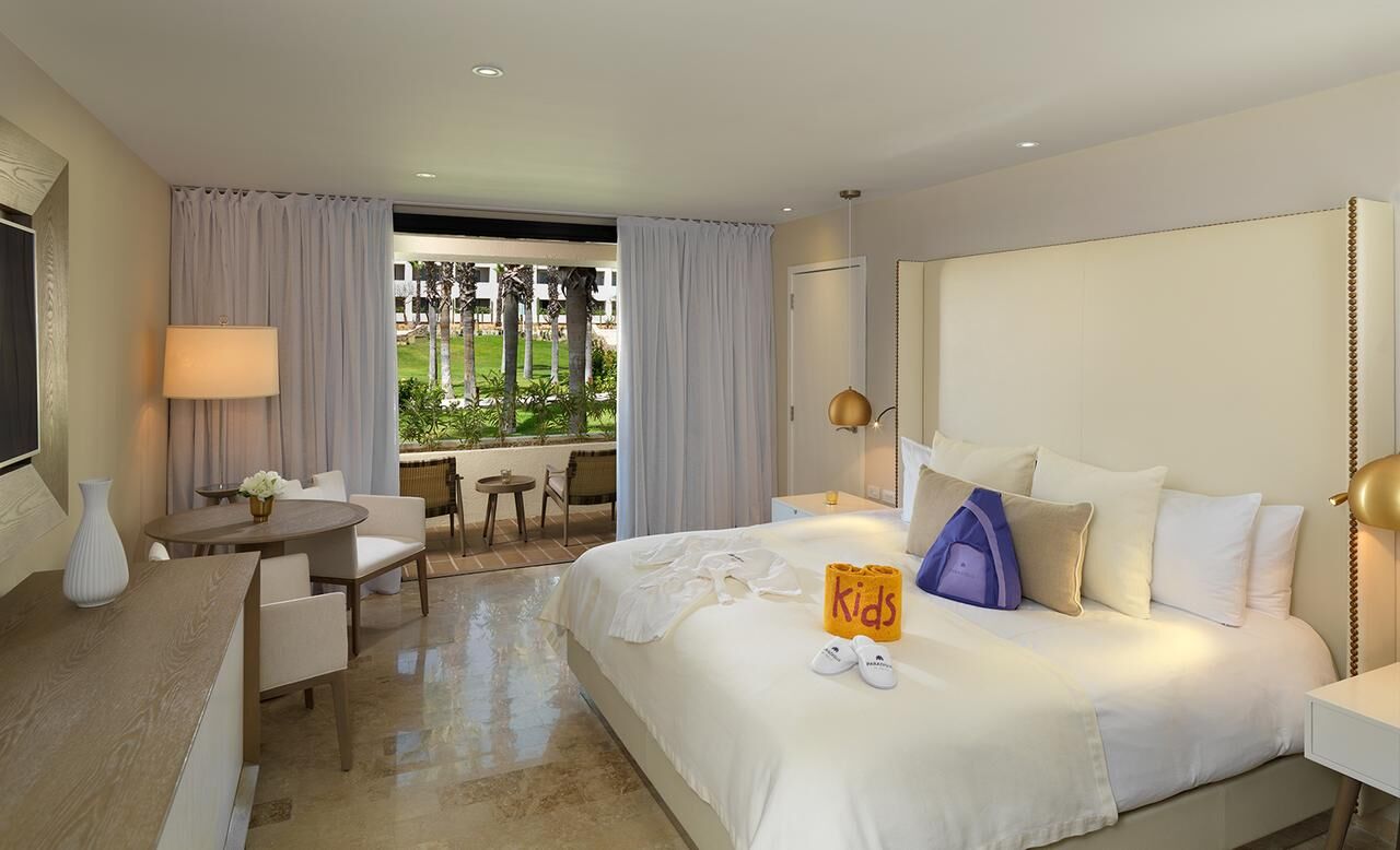Sophisticated and elegant, all suites at Paradisus Los Cabos provide total comfort and a chic atmosphere with unbeatable views of the Sea of Cortez. Indulgent beds, warm tones and private terraces blend the inviting with the luxurious. All units also feature air conditioning, TV's and telephones. Studio hotel units house two double beds or one king-size bed and one bathroom. One-bedroom units contain one king-size or two double beds, one pull-out sofa and two bathrooms. Two bedroom units offer one king-size bed, two double beds, one pull-out sofa, three bathrooms and a partial kitchen.