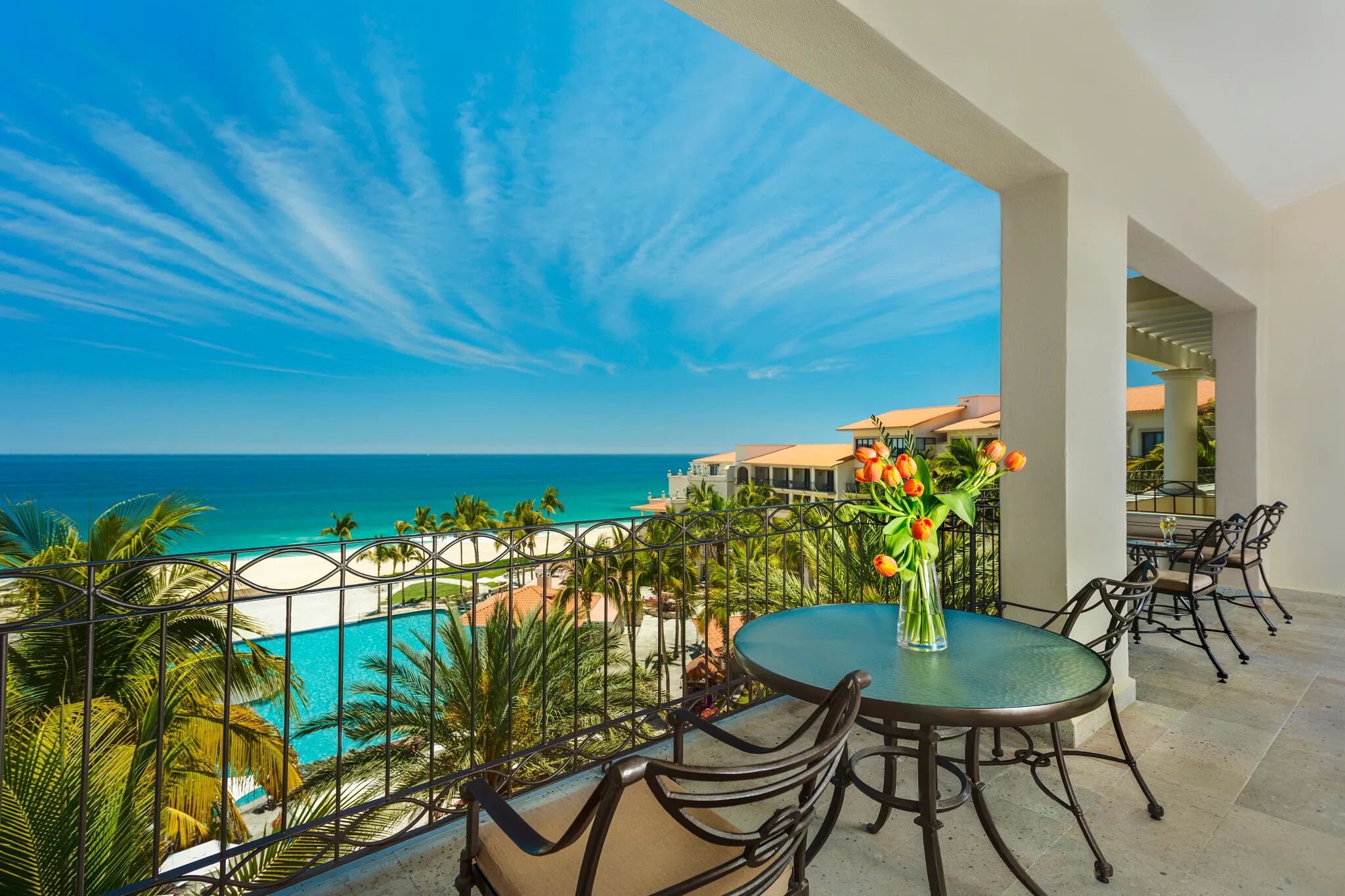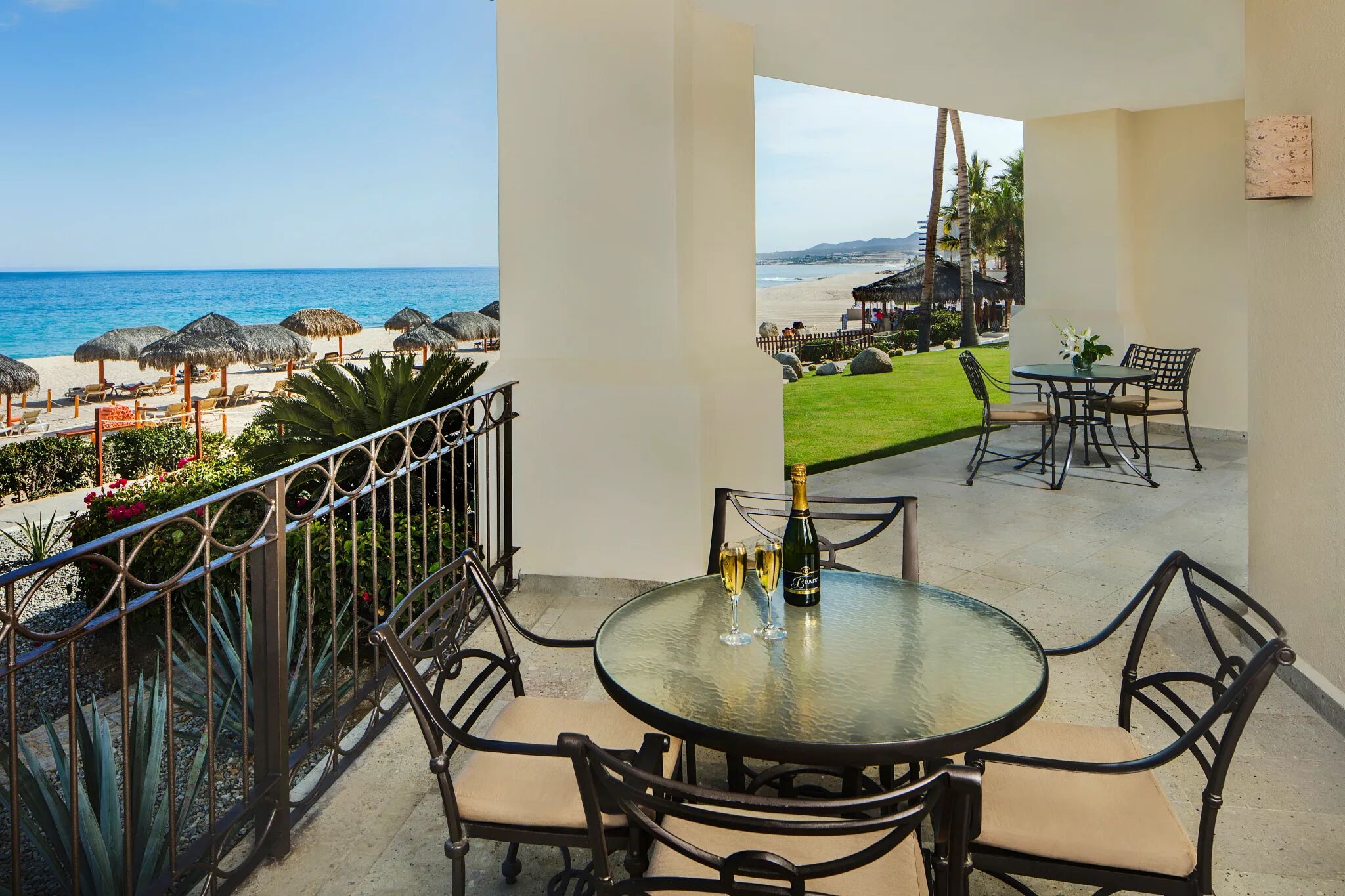 Stunning suites come in studio or one-bedroom configurations, capable of sleeping up to three or five, depending on unit configuration. Choose from either lush garden views that overlook the grounds' foliage, or breathtaking ocean views showcasing the shimmering Sea of Cortez. Open floor plans, upscale marble bathrooms and furnished balconies and patios perfect for soaking up the fresh ocean air only add to the luxury.