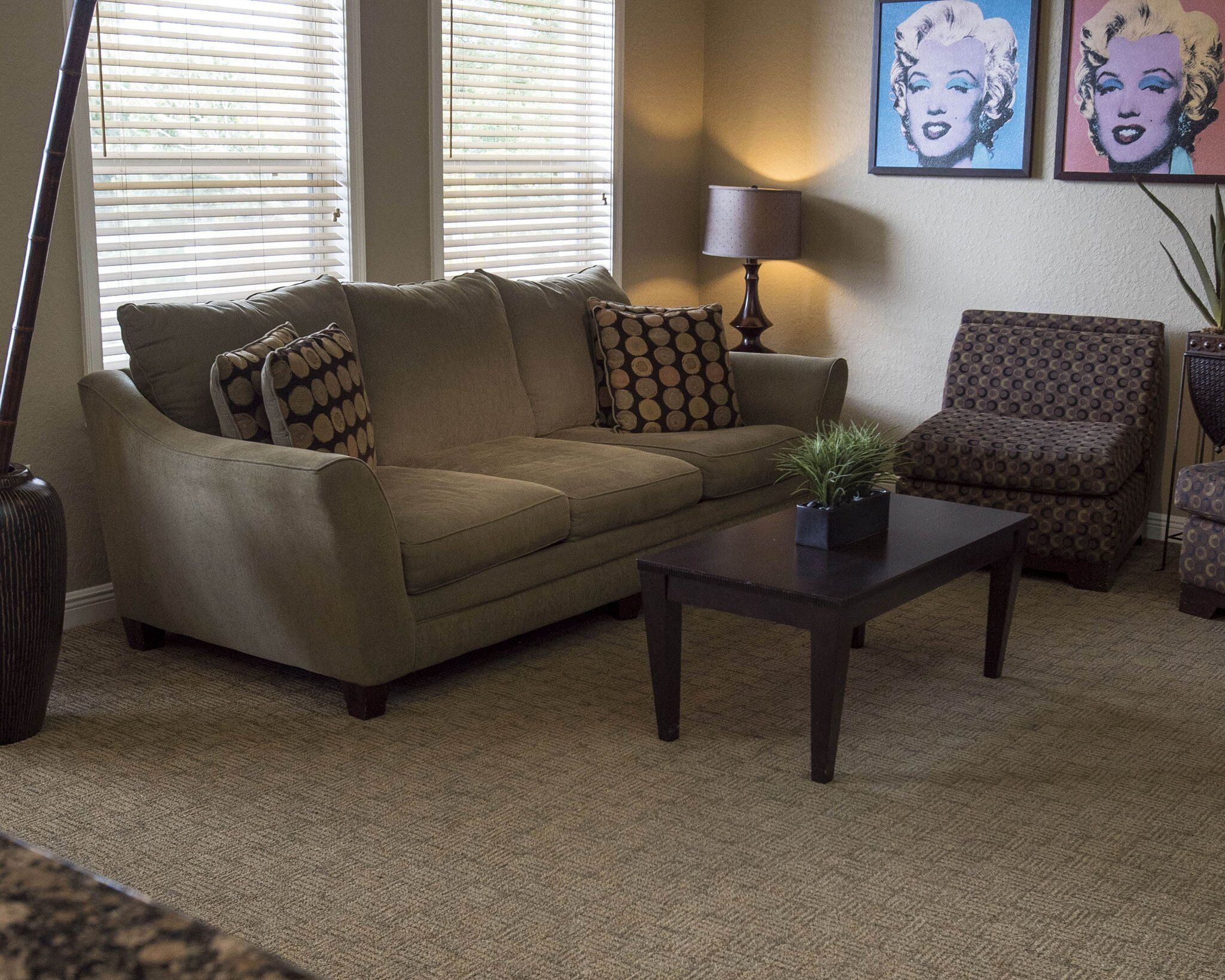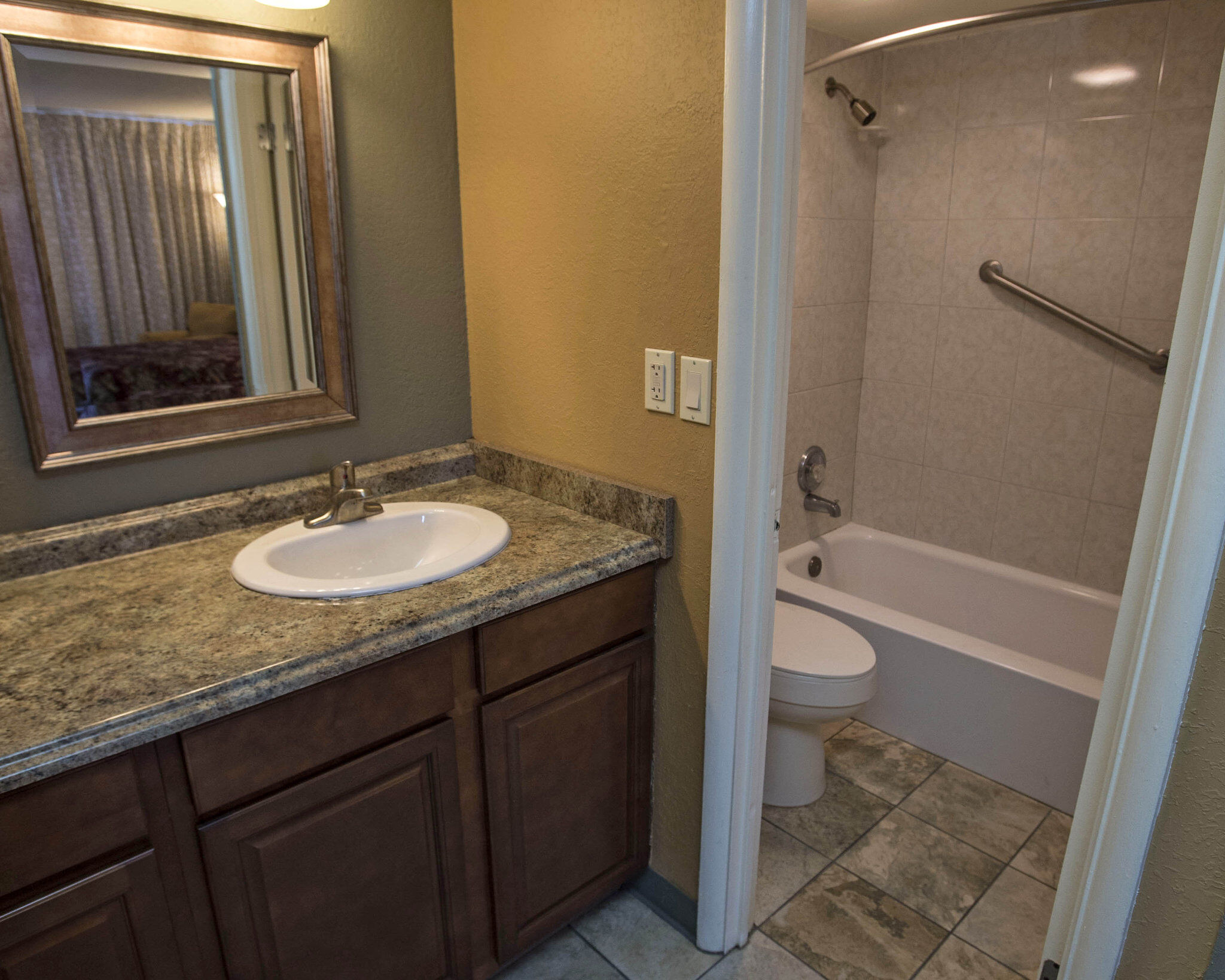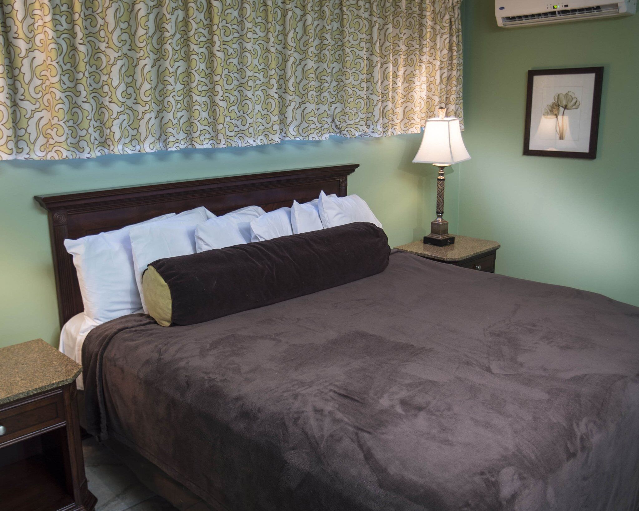 One bedroom timeshare units feature two full baths, with a whirlpool tub and king-size bed in the master bedroom. Two bedroom units offer two-and-a-half baths with the master bedroom having a two-person, color-changing whirlpool tub, and a giant glass block enclosed ultra shower with multi-shower heads. The master bedroom has a king-size bed, and the second bedroom has two queen beds and a private bath. All units at The Gardens resort are equipped with a full kitchen with eat-in bar and granite counter tops, high speed Internet, big screen 46" TV in the living room, 27" TV in each bedroom and an in-villa washer/dryer.