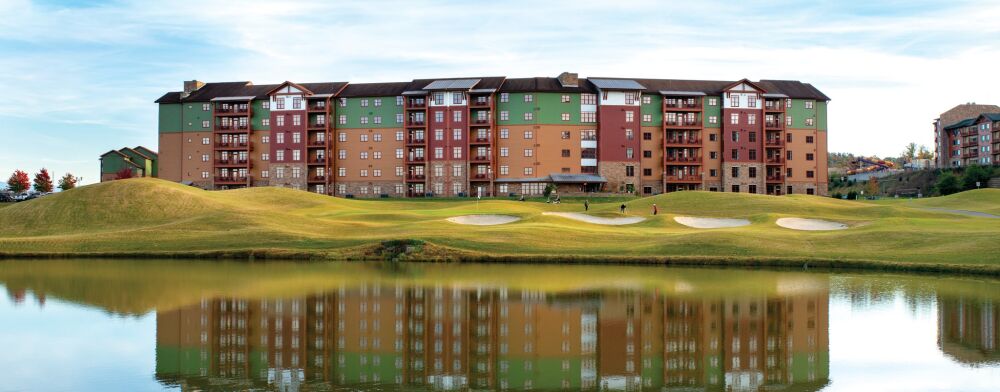 Club Wyndham Great Smokies Lodge is located just outside of Smoky Mountains National Park next to the Little Pigeon River in Sevierville, Tennessee. The resort has 189 units featuring featuring modern mountain architecture. The resort includes a mix of well-appointed one-, two- and three-bedroom units as well as two-, three-and four-bedroom upscale Presidential units, several of which will overlook the beautiful Eagles Landing Golf Course. Each unit in the Wyndham property will feature such amenities as a full kitchen, dining room, in- unit washer and dryer, and entertainment center. Presidential units will include a ledgestone fireplace in each great room.