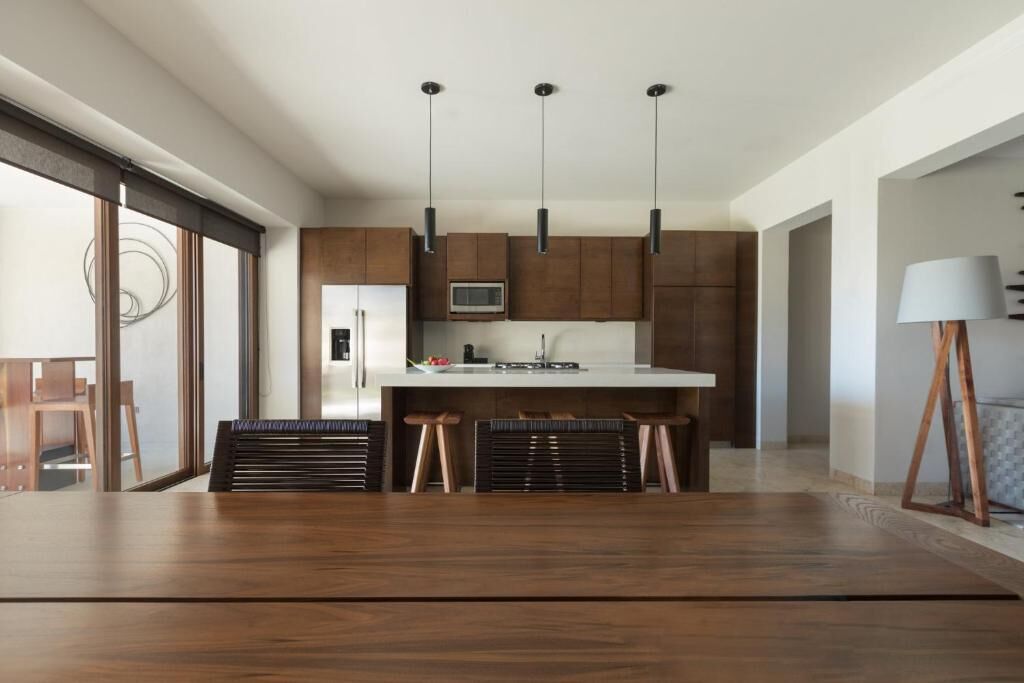 Spacious residences are designed to feel both indulgent and residential, featuring modern furnishings and thoughtful layouts. Each accommodation includes a fully equipped kitchen or kitchenette, elegant living and dining spaces, spa-inspired bathrooms, and private terraces—many with sweeping ocean views. Select residences offer plunge pools or direct pool access, enhancing the sense of exclusivity and seamless indoor-outdoor living.