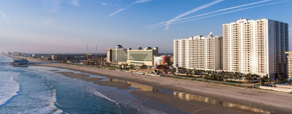 Nestled along the beachfront and integrated within the expansive 80,000 square foot Ocean Walk Village, Club Wyndham Ocean Walk delivers an abundance of on-site conveniences. Guests can enjoy a diverse array of facilities including a retail marketplace, casual dining court, welcoming lobby lounge, mini golf course, fitness center, game room, souvenir boutique, and recreation hub. The pool area features both covered and open-air pools, a meandering lazy river complete with cascading waterfalls and thrilling slides, plus a relaxing whirlpool spa as delightful alternatives to the nearby Atlantic coastline. Additionally, a full-service restaurant and waterside bar and grill ensure every appetite is satisfied throughout your stay.