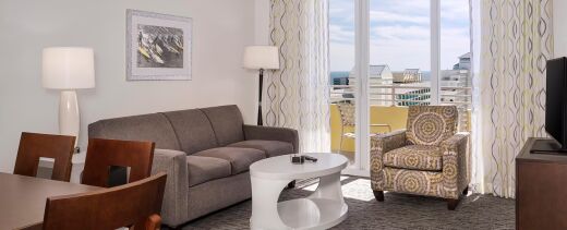 The resort's accommodations include expansive one-, two-, three, and four-bedroom vacation homes, providing ample room for families and groups to unwind together. Each unit at this premier Daytona Beach destination features a complete kitchen setup, in-unit laundry facilities, distinct sleeping quarters, and generous common areas. Enhanced with luxurious bedding, efficient climate control, and contemporary styling, these vacation homes deliver exceptional comfort and convenience. Many units showcase upgraded features such as jetted soaking tubs in the primary suite, private outdoor terraces, and spectacular oceanfront vistas.